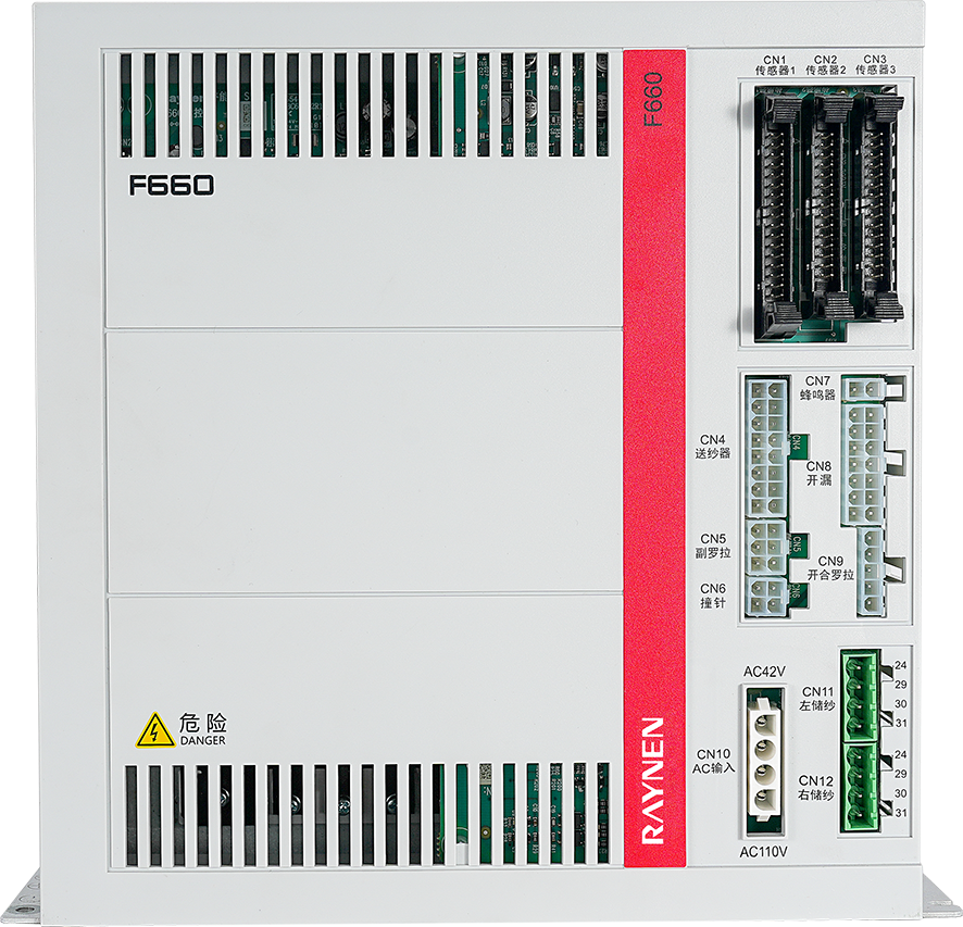 橫機電控,是電腦橫機的核心部件,它能通過識別打版系統(tǒng)制作的針織打版文件,猶如毛衫的打印機一樣,將毛衫或鞋面的設(shè)計變?yōu)楝F(xiàn)實,主要由配電盤、主控盒、伺服、起底板、羅拉驅(qū)動、機頭以及相關(guān)線材組成。