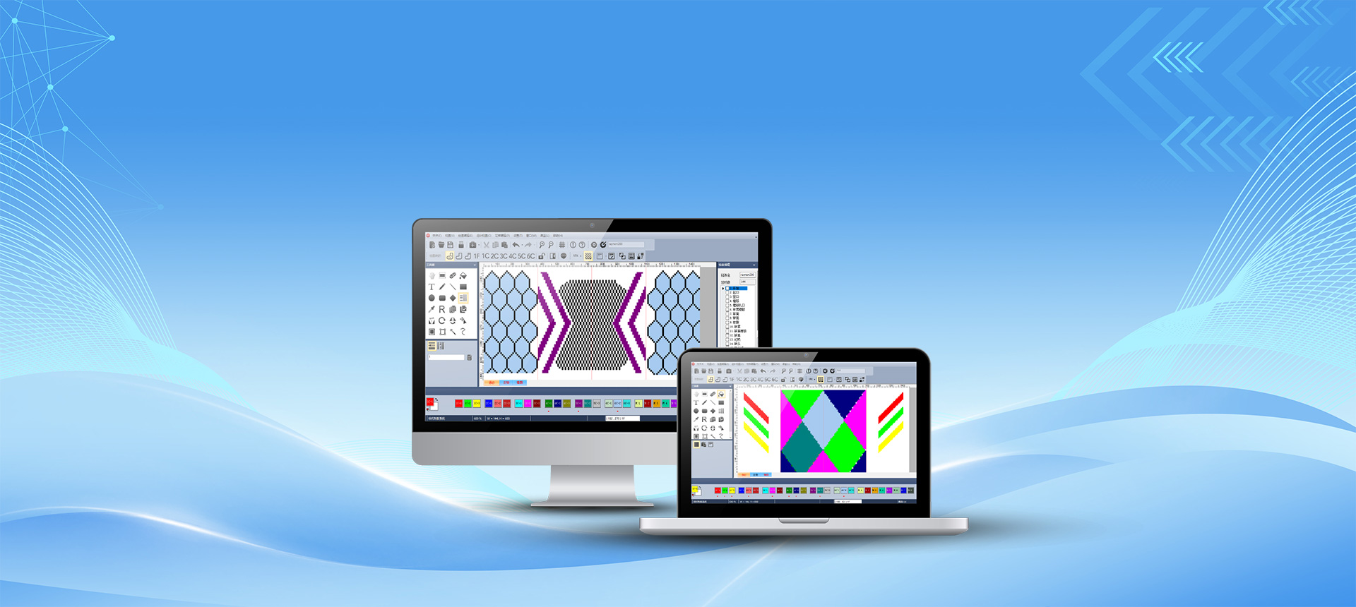 簡便操作模式精準實現(xiàn)花樣繪制,兼容市面上絕大部分鏈條程序,不同格式花型支持制版內(nèi)直接修改保存。