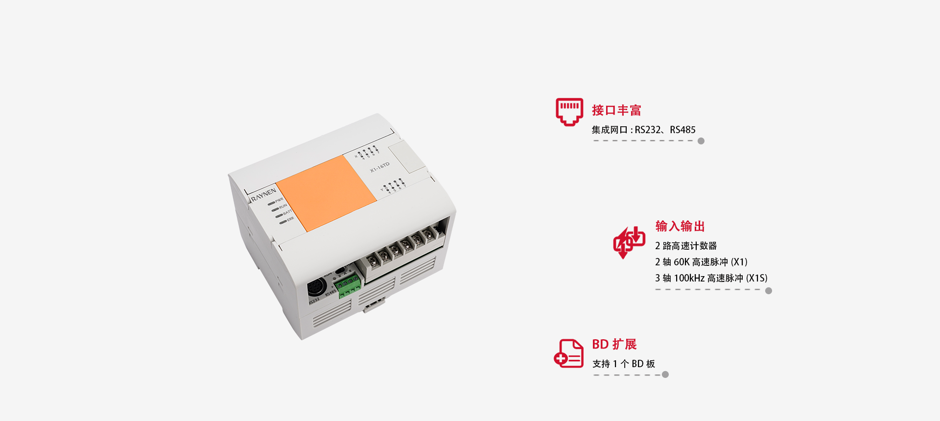 ▲ 具備脈沖輸出、高速計數(shù)等簡單的運動控制功能