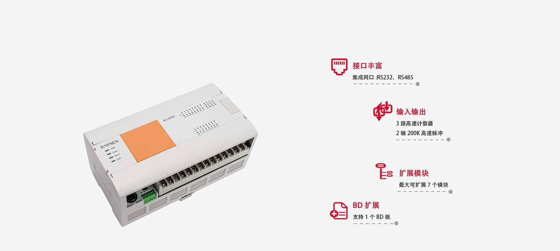 ▲ 支持一個BD擴(kuò)展板,最大可擴(kuò)展7個模塊。