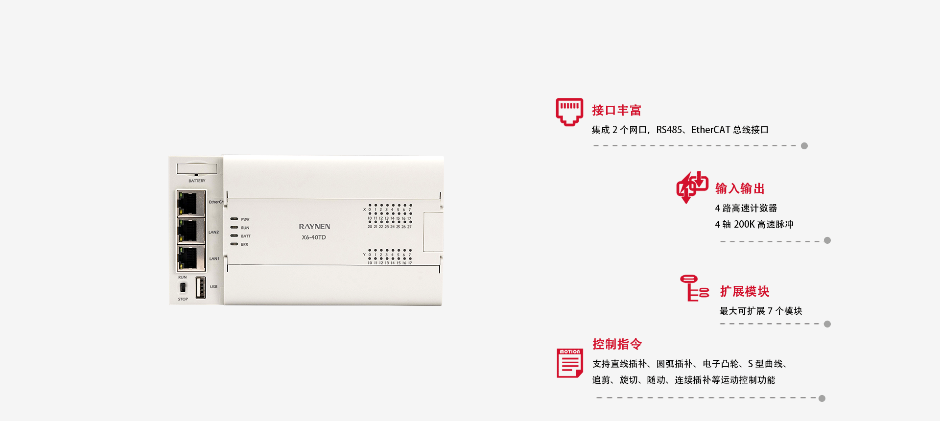 ▲ 支持EtherCat 總線通訊,具備直線插補、圓弧插
