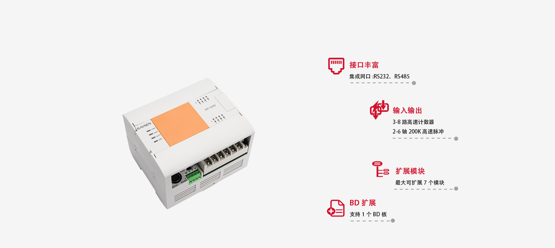 ▲ 具備2-6 軸高速脈沖輸出,高速計(jì)數(shù)、直線插補(bǔ)和圓弧插補(bǔ)等運(yùn)動(dòng)控制功能